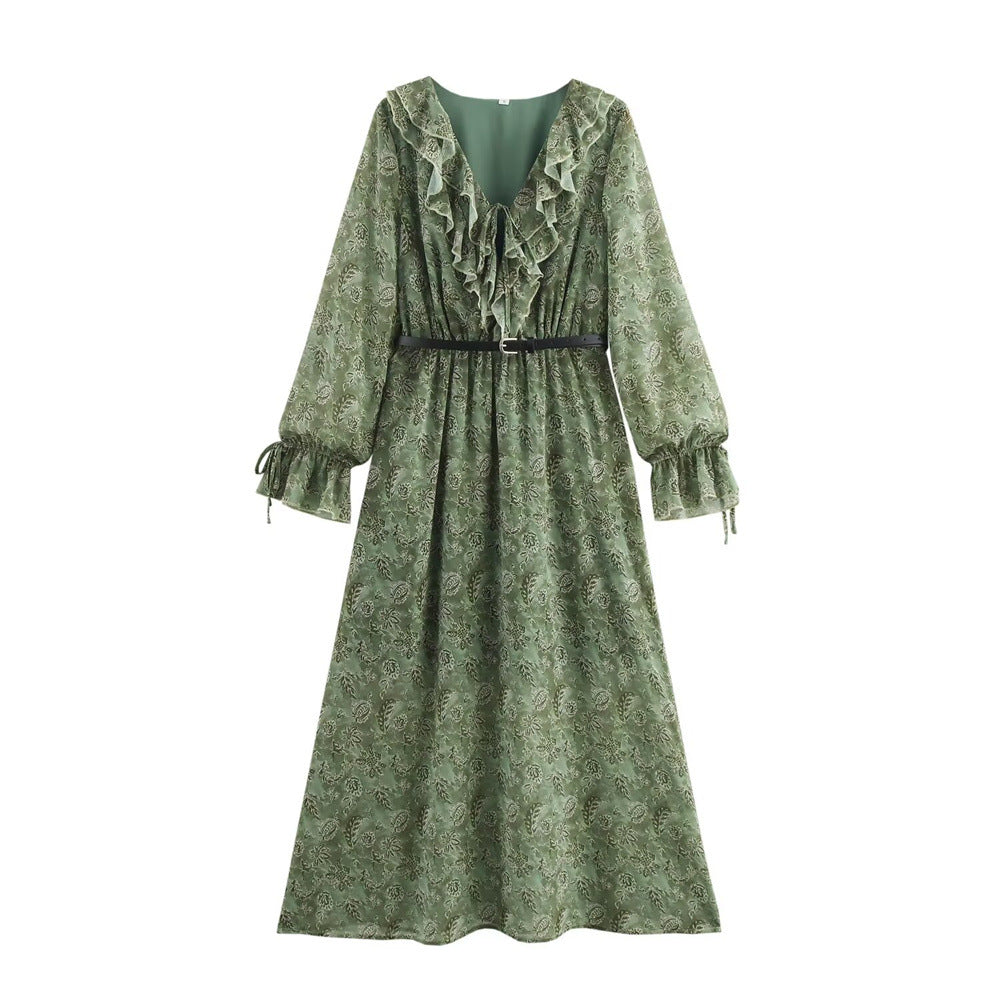 Green Geometric Print Long Sleeve Layered Maxi Dress 2025