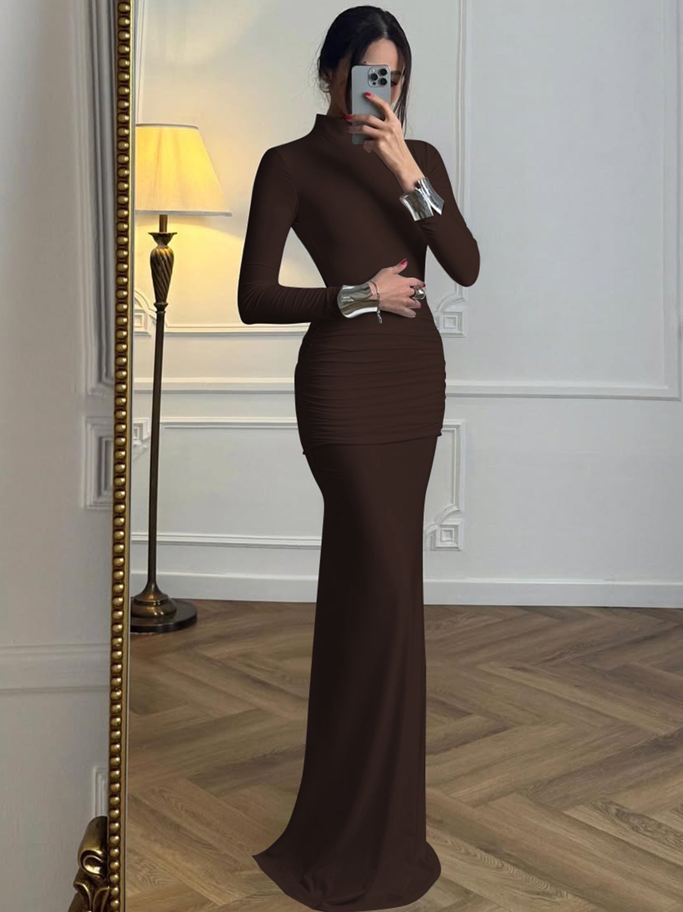 An elegant fishtail maxi dress with a stylish backless design and soft milk silk texture. Perfect for glamorous events and evening wear.