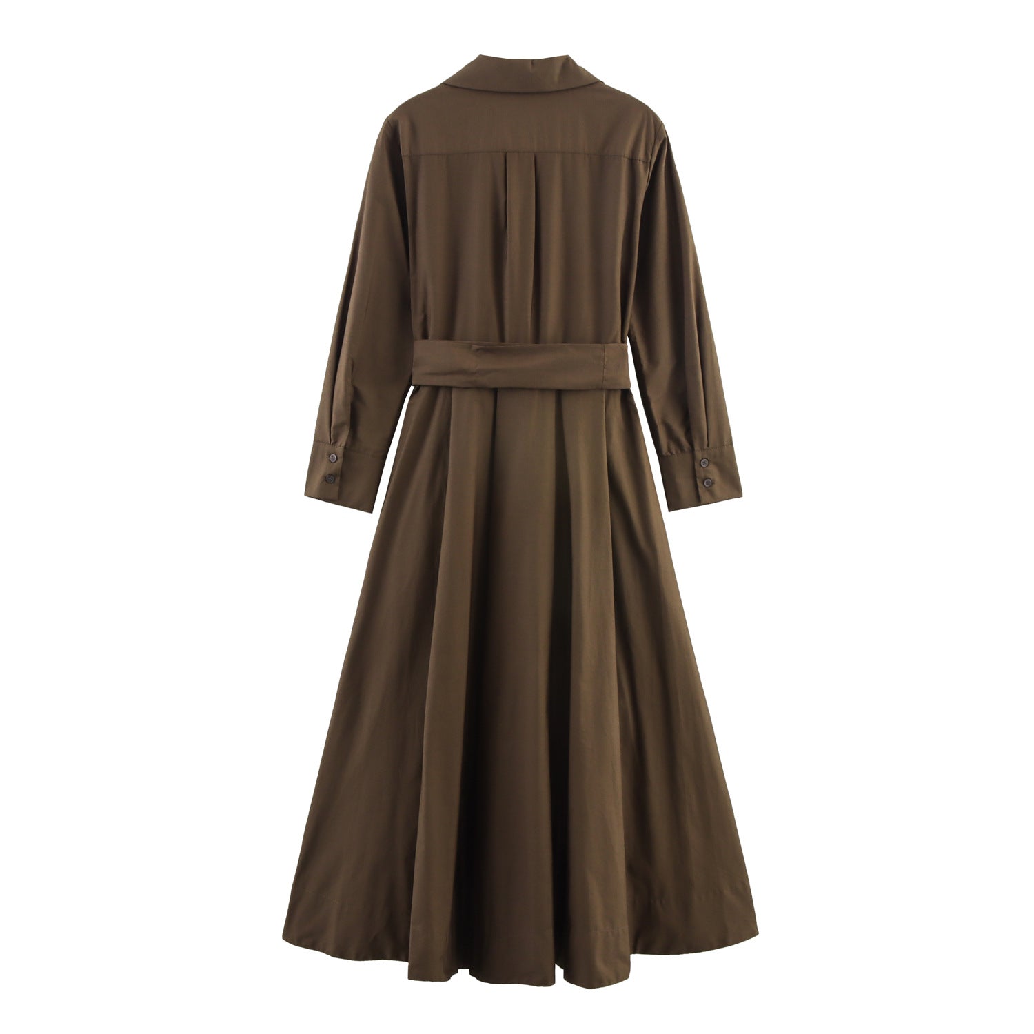 • British Style Long Sleeve Lapel Belted Shirt Dress for Women